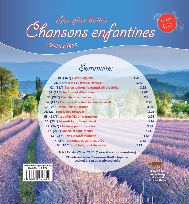 15 chansons enfantines traditionnelles et récentes merveilleusement interprétées par un choeur d'enfants, avec accompagnement orchestral original et présenté avec un splendide livre contenant les textes et de très belles photos de nature et d'animaux.